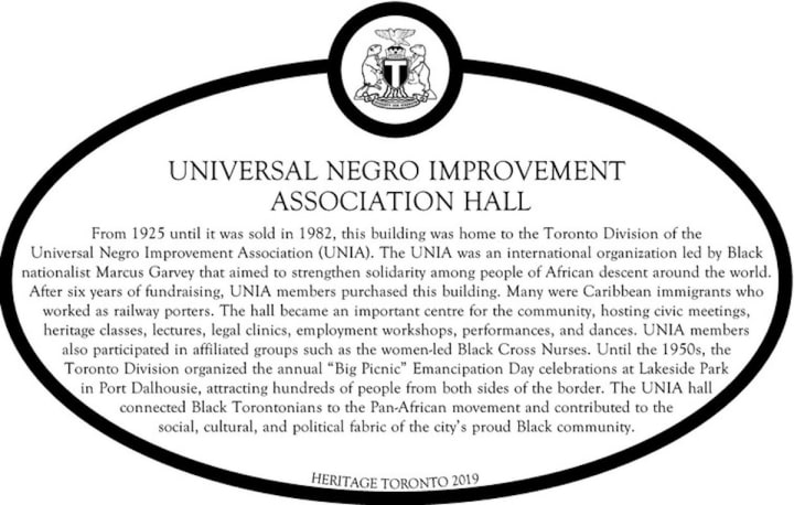 The College Street building was torn down not long ago but a plaque on the site commemorates UNIA’s existence there.