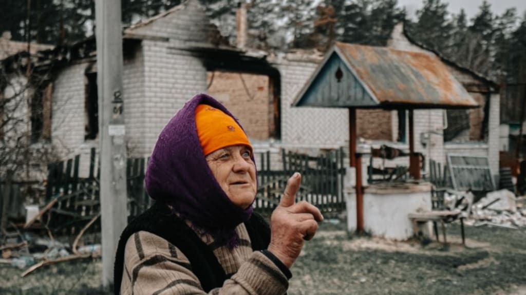 At the end of March, the Russians left the village. The prisoners did not know this, so they sat in the basement for another day. When they finally left on April 1, the village was already free, and the Ukrainian military entered it. Baba Valya tells non-stop how they help her.