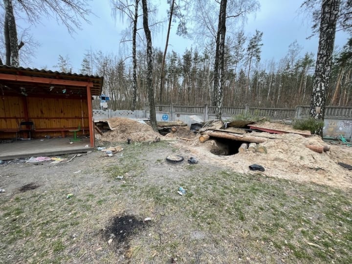 Dozens of fences were broken in the village — the Russians drove into the yards to hide equipment. In some yards, there are still burnt trucks and special vehicles. Between the houses there are dug earthen fortifications, on the territory of the local school there are trenches and ditches for tanks and other heavy equipment. The Russians turned the village into a fortress, because they planned to stay here for a long time. And the residents were taken hostage.