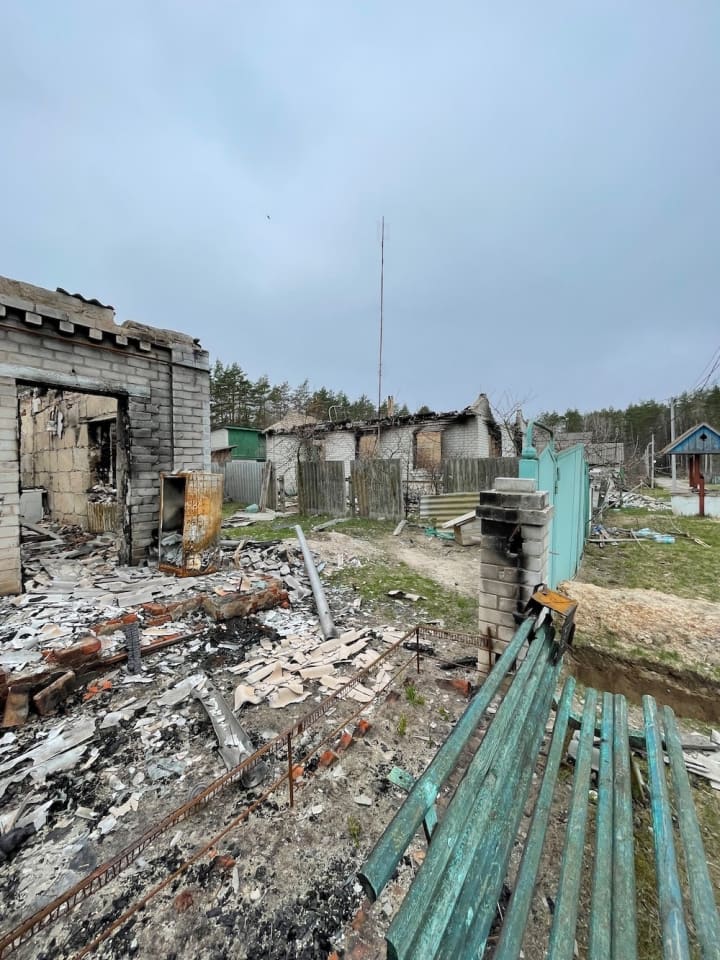 At first, it may seem that Yahidnyi was lucky: the houses along the road to Chernihiv are intact. But further, in the village itself, there is a completely different picture - destroyed houses, some were simply razed to the ground. Some of them were destroyed by the russians even before they came to the village — they were shelled with artillery. Those surviving houses were also unlucky: according to locals, there was a headquarters of the occupiers in the village.