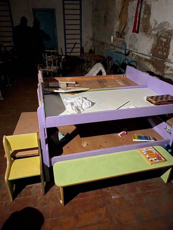 The basement of the school consists of several rather small rooms and a corridor. The locals lived here. The elderly, the babies, the young — all.