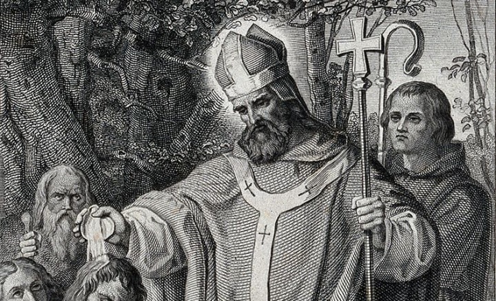 One Christmas season Saint Boniface got so frustrated with the pagan rituals that worshiped oak trees that in anger he chopped down a large oak tree. When this mighty oak came crashing down it crushed everything underneath it except for a tiny fir sapling. To Boniface, the survival of this fir sapling seemed a true miracle and from then on people planted fir saplings to celebrate Christmas. As time passed people started to bring the bows of green right into their homes and the custom was to take a small tree and tie it upside down from the rafters just as it was without any decorations.