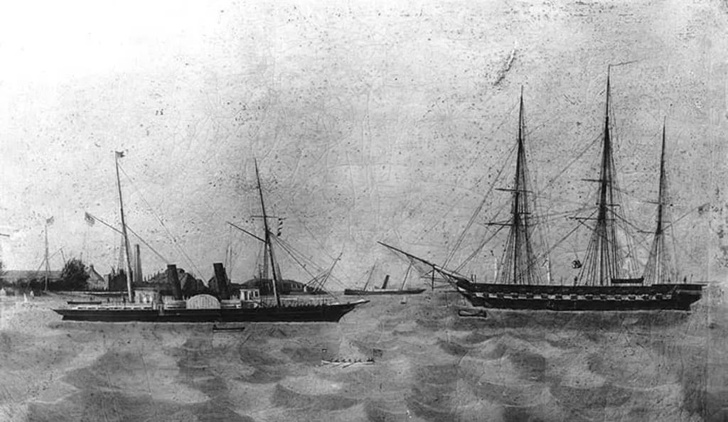 By December 1861, Estrella lingered in New Granada, briefly sheltering Santa Marta residents during the Colombian Civil War. In 1862, the New York firm McLean and Lince bought her in Savanilla, and she reached New York on May 28 after a nine-day voyage, despite damaging her starboard paddle wheel on a submerged wreck off Kingston, Jamaica. Registered as an American vessel, she was chartered to the U.S. Army Quartermaster Department from July 7, 1862, at $400 per day, before transitioning to the U.S. Navy later that year. Commissioned by October under Lt. Cmdr. A.P. Cooke, Estrella was armed with three heavy guns and two howitzers, transforming her into a formidable blockade runner interceptor and shore bombardier.