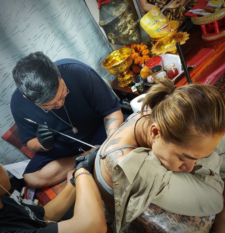 A key area in which the influence of the Rishi remains especially powerful is Sak Yant, the sacred tattoo tradition of Thailand. These tattoos are not just artistic expressions—they are mystical inscriptions believed to provide protection, courage, and metaphysical strength. Each Sak Yant design is grounded in sacred geometry, spiritual chants (kata), and mystical formulas said to originate from Rishi teachings. Tattoo masters, or Ajarns, always pay homage to the Rishi before performing the ritual, recognizing them as the original architects of these spiritual diagrams. The tattooing process itself is highly ceremonial, involving chants, offerings, and a strict moral code that must be observed to maintain the tattoo’s spiritual efficacy. The tradition is especially embraced by Muay Thai fighters, soldiers, and others who face danger regularly, as many seek Sak Yant blessings to shield and empower them. Through this practice, the spirit and power of the Rishi continue to protect the living.