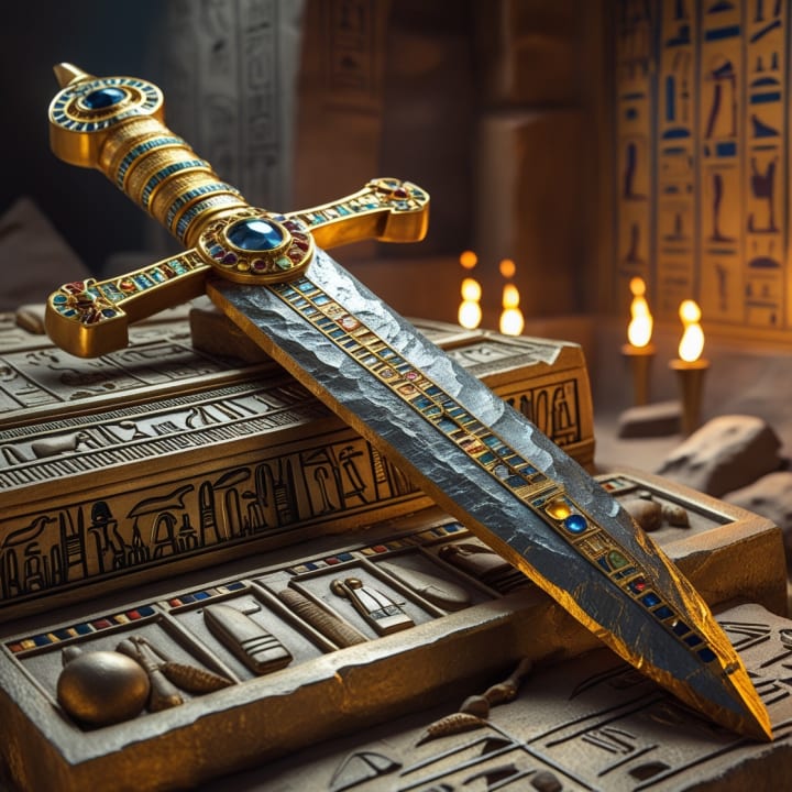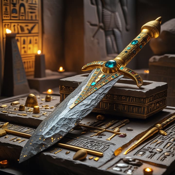 Tutankhamun's celestial dagger, discovered in his tomb, is a mysterious artifact forged from meteoric iron. This extraordinary blade symbolizes the connection between the ancient Egyptians and the heavens, blending divine reverence and superior craftsmanship. The dagger’s intricate design, featuring precious metals and gems, highlights its significance as a sacred royal possession. The story unveils how this unique artifact, crafted from celestial material, reflects the deep spiritual and astronomical knowledge of ancient Egypt. It explores the journey of its creation and the mystique surrounding its purpose—whether as a royal weapon or a divine relic guiding the young pharaoh to the afterlife.