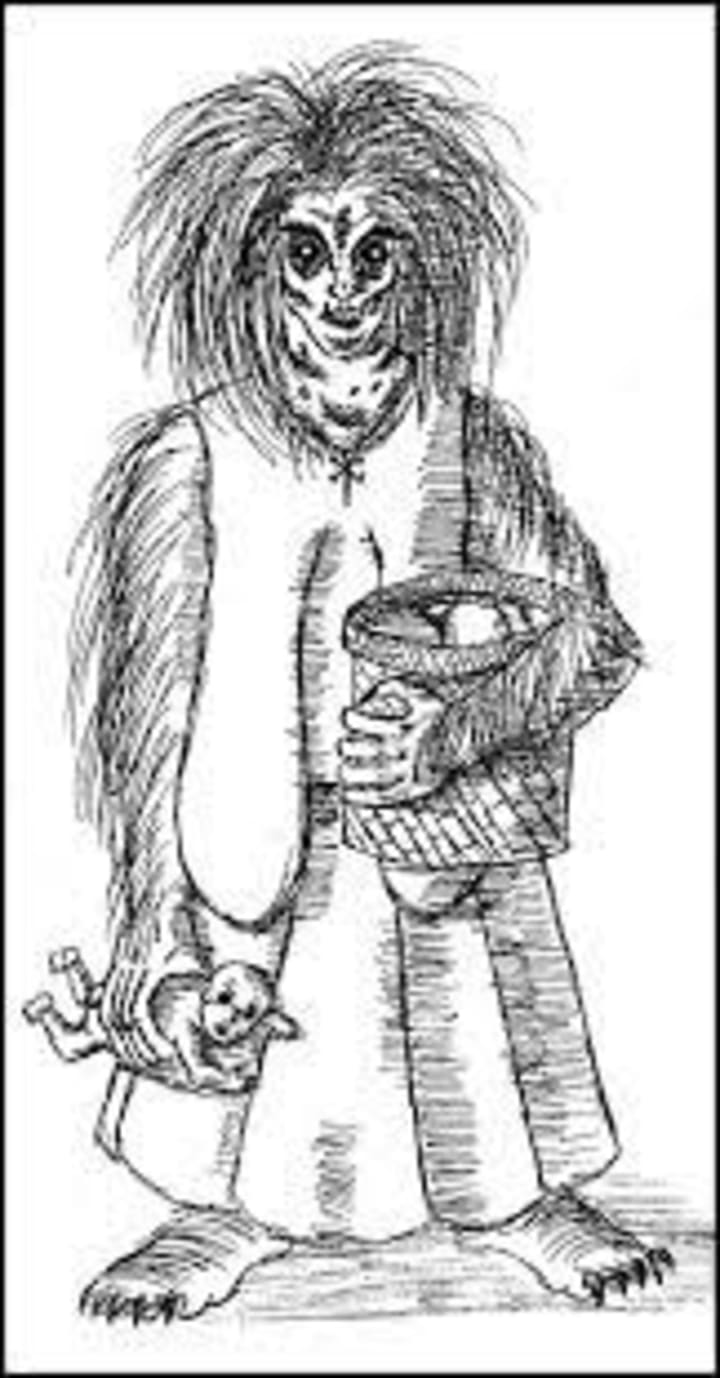 Mamuna is an evil spirit, often taking the shape of an ugly, hairy woman. Mamuna is said to abduct children and place her own offspring in their place. The common motif within tales of Mamuna is that the child victims are one; unattended and two; unprotected by magico-religious practices, such as tying a red string around a child’s wrist or giving them a red hat to wear.