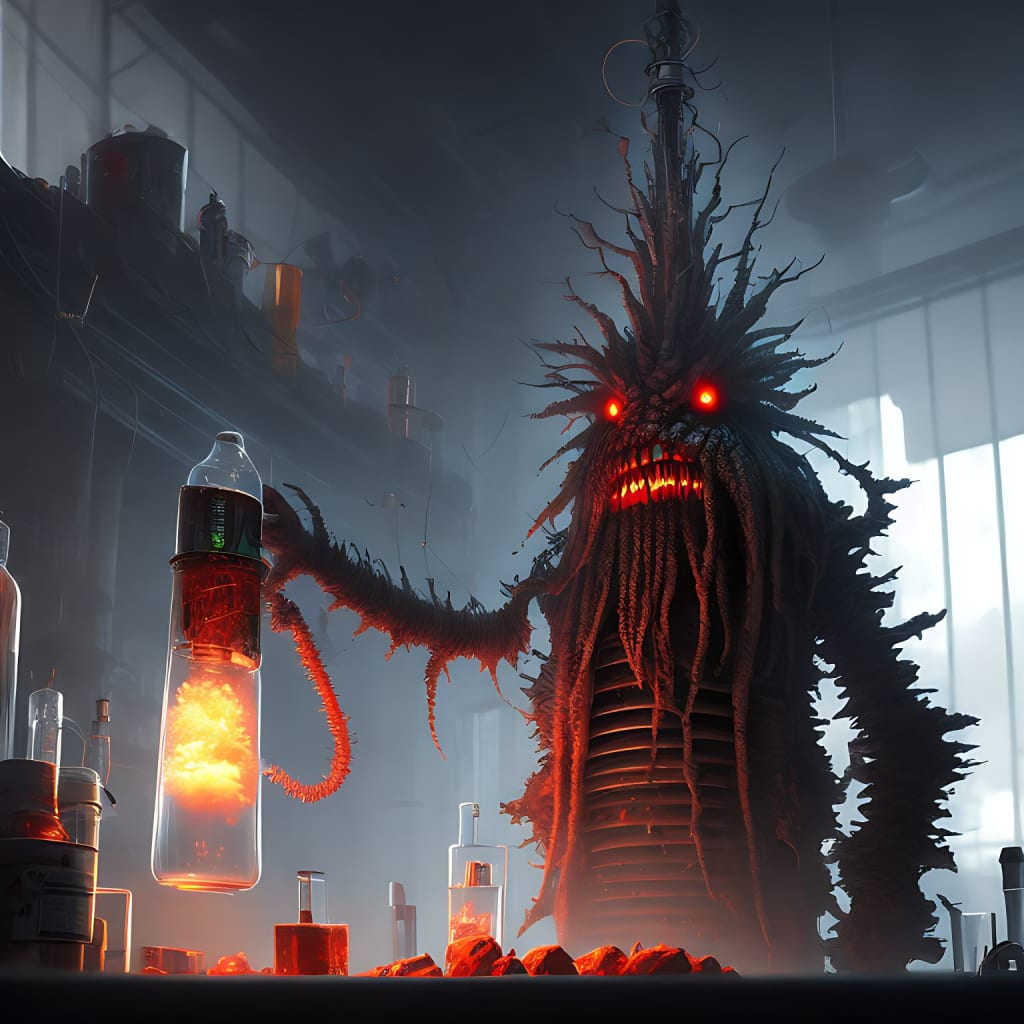 Victor tried to flee, but the critter was too fast. It possessed him in the laboratory, its massive form blocking the only exit.Dr. Victor knew he was going to die.