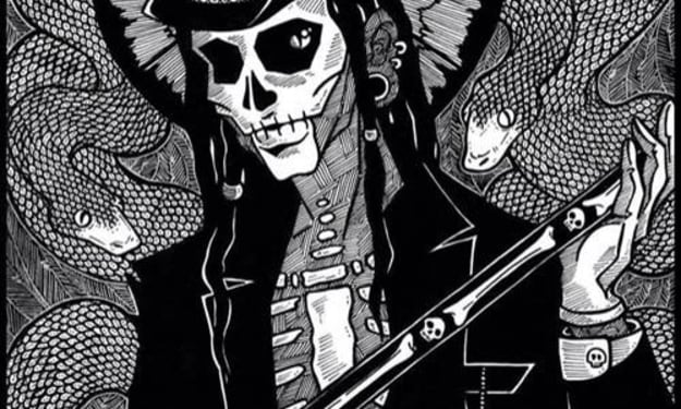 An amalgamation of darkness began to envelop the room and absorb the bodily matter painting it. The Death God take what the Life God has done away with. An ancient pact has been maintained this day.