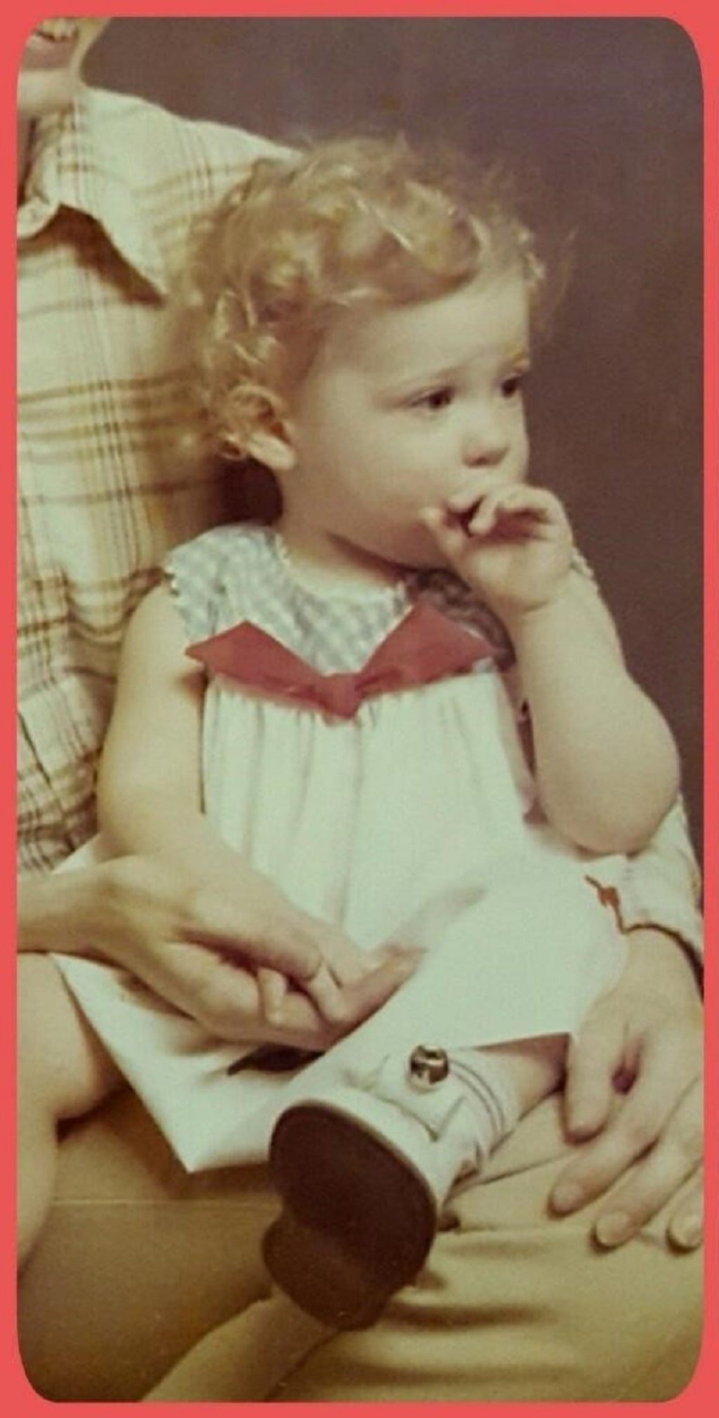 Up popped a little girl, the same girl, around the age of 4. She had curly brown hair pulled up with a red ribbon and a dark blue sailor dress with a matching red tie. I remember laughing and picking her up like she was someone I had known for a long time. I carried her through the house to show my dad so he would believe me about the house being haunted.