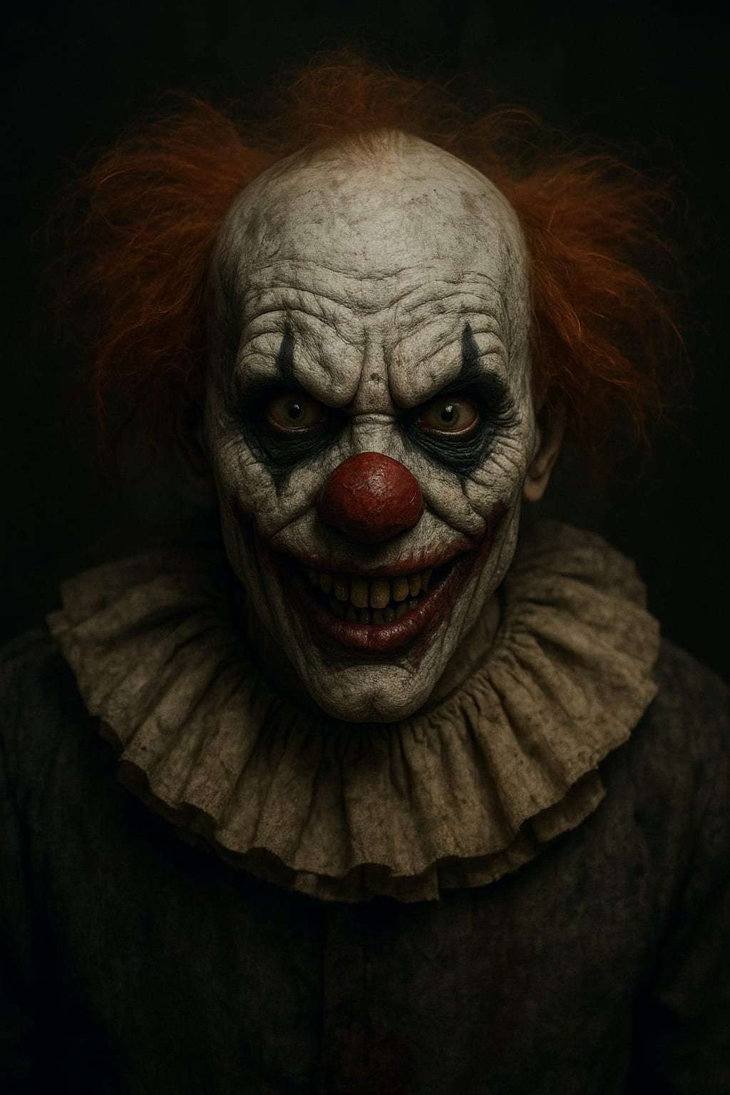 As Billy tried to speak, his jaw click clacked, drawing in the attention of the resurrected clown. Click Clack made his way to Billy, mesmerised by the sound. This was their window to escape. Jodie waved at John and pointed to the exit, John didn’t need a second invitation and darted his way around the wall and into the darkened hallway with Jodie close on his heels.