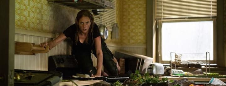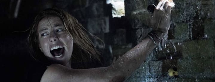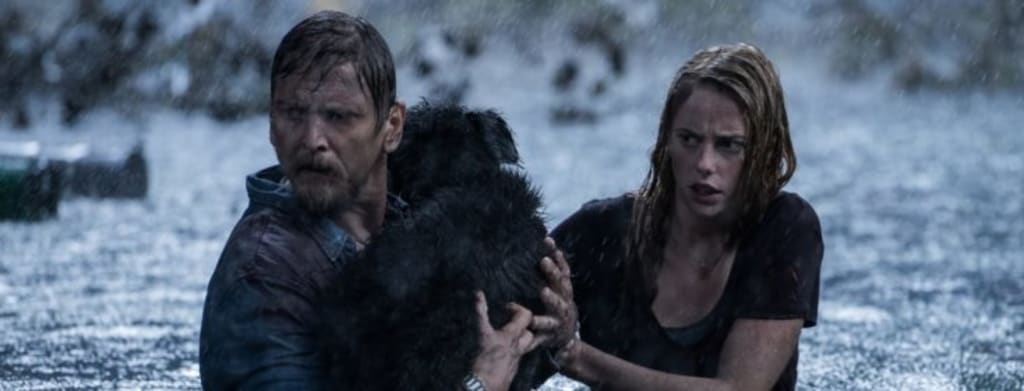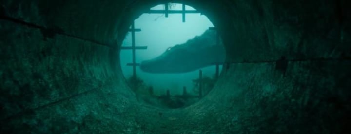 “Let’s not make it too complicated!“ That’s what the creators of Crawl thought, apparently. Everything takes place at one claustrophobic location. And the entire film is carried by just two main characters. Occasionally, a few additional characters appear. But their function is limited to playing live fish food. In other words, they usually do not remain intact for long. And for the lessons' “logical reasoning,” these good-for-nothings didn’t get high grades either. And the way in which they involved the alligators in the story is also simple. A hurricane that causes rising water, and you are stuck with a whole swarm of those bloodthirsty monsters in your backyard. Only the discovery that Haley made in the basement wasn’t 100 percent correct in my opinion. Coincidentally there was a pregnant alligator who used the flood to shamelessly dump her eggs in Dave’s basement at lightning speed. Well, in this way there was also an explanation for the aggressive attitude of the nest of primitive reptiles.