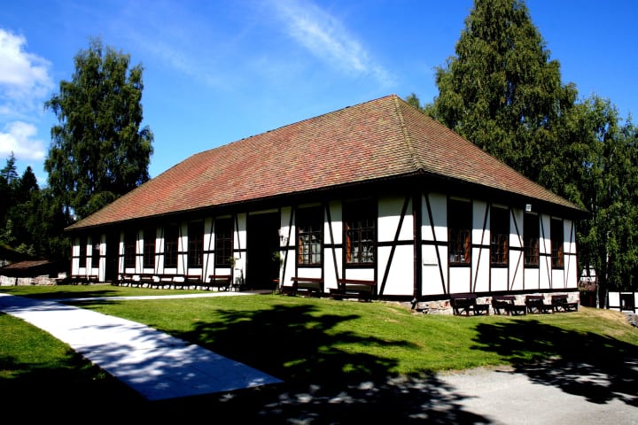 Blaafarveværket is a former mining site in Modum and dates back almost 250 years. It was founded to mine cobalt to produce porcelain and glass, Over the years reports have been given of Blamannen. This is a ghost that could preempt disasters by appearing with a lantern to warn miners. Despite the apparitions good intentions he was not always welcome because his appearance was associated with death and disaster. In 1854 the worst accident occurred and six miners were killed. Only one man survived to tell the story about the Blamannen ghost. Today this is a popular museum - The Cobalt Works Museum.