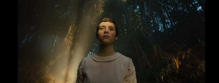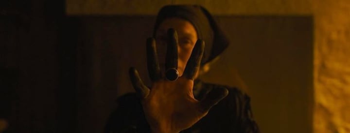 The mushroom scene can be called amusing and already suggests that this film is certainly not an accessible version of the known fairy tale. It’s also not recommended to watch this with your kids as you did with “The Lion King”. This film is too dark, gloomy, and perhaps too terrifying for small children. Even though I found the label “horror” a bit exaggerated. “Gretel & Hansel” isn’t really creepy. Don’t expect the typical elements of a horror. No jump scares. No gory scenes or possessed creepy persons. But certainly, you’ll experience an unpleasant and disturbing feeling throughout the whole movie. An intense, eery atmosphere in which you are immersed.