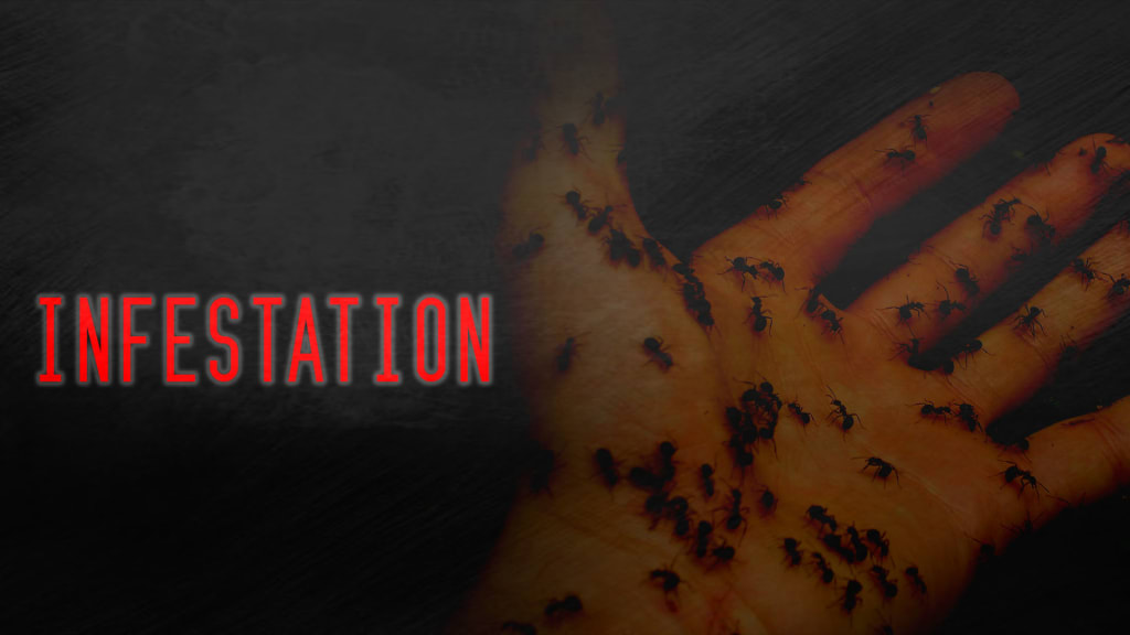 As the darkness pressed in around me, my wife snoring comfortably beside me, I sat and felt the ants crawl across my skin. It was impossible, they couldn't be there, but I could feel them nonetheless. They did not seem to want to bite, but they seemed more than willing to chase and caper across my skin. I shuddered as I lay there, my mind beginning to scamper and thrash like a rat in a cage. I hadn't bothered to cover up, my fluffy bathrobe more than enough to keep me warm, and I could feel the little devils as they swarmed and writhed beneath it. It felt like an entire nest was moving on my chest, and my hands shook as I reached to draw the edges apart.