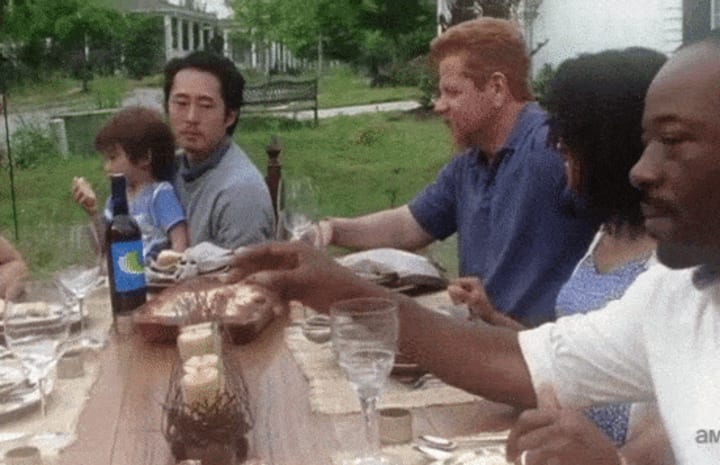 But along with clues about babies, the fantasy sequence also possibly hints at something a little more grim: the deaths of two other beloved characters. As the camera pans along the group, it passes Morgan, who snuffs out two of the four candles in the middle of the table. Obviously the two candles Morgan extinguishes are supposed to symbolize the deaths of Glenn and Abraham - but what about the other two? Do the remaining candles symbolize Maggie and Sasha, the partners left behind, or could it be a hint that two more major characters will be killed off by the end of Season 7, and that their candles are sitting there just waiting to be snuffed? After the Season 7 premiere it almost doesn't bear thinking about!