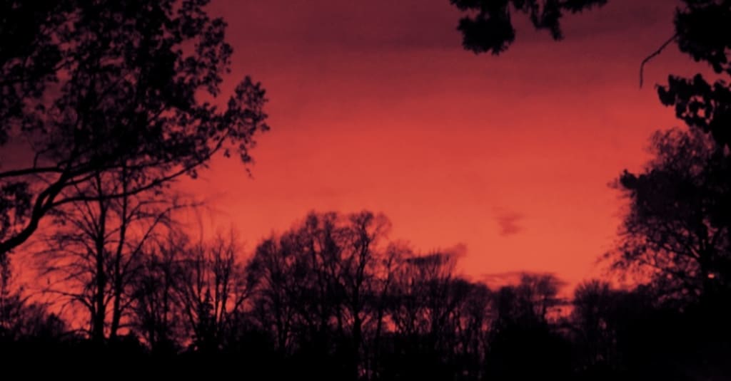 The sky had turned into a bloody red and all else was black, even the ground beneath him.