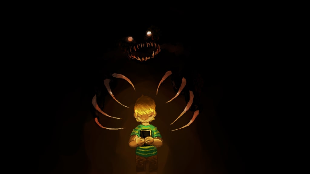 Albert awoke tied to a chair with duct tape. His eyes slowly blinking open he scanned the room in a drowsy state. The scent of cooking meat filled the room which caused his eyes to shoot open. The spot where Roxanne body lay was now a large puddle of blood, bones and various organs. Albert began to sob hanging his head down. Matthew skipped into the living room smiling, he patted Albert on the head and pointed towards the dining room. There, a dark figure could be seen moving about. The figure came into the living room, Albert instantly began to shiver in fear. A creature which stood 8 feet tall stood over him grinning. The flesh black as night, long bony fingers, with silver claws, hollow eyes, with jagged teeth, it seemed to have body parts sewn into it that had looked as if they had began to rot. As he took in the grotesque form of this creature he noticed one of the arms it had stitched into itself was Roxanne's, the ring finger baring the ring he had just given her that night to replace the old ring. Albert sobbed for it all to just end. As he did so the creature poked its finger into the top of Albert's head. Matthew began to clap with a happy giggle. The creatures finger pushed into Albert's skull. The last thing Albert focused on was the black book in Matthews pocket. Matthew moved closed to Albert's face looking deeply into his eyes he whispered,