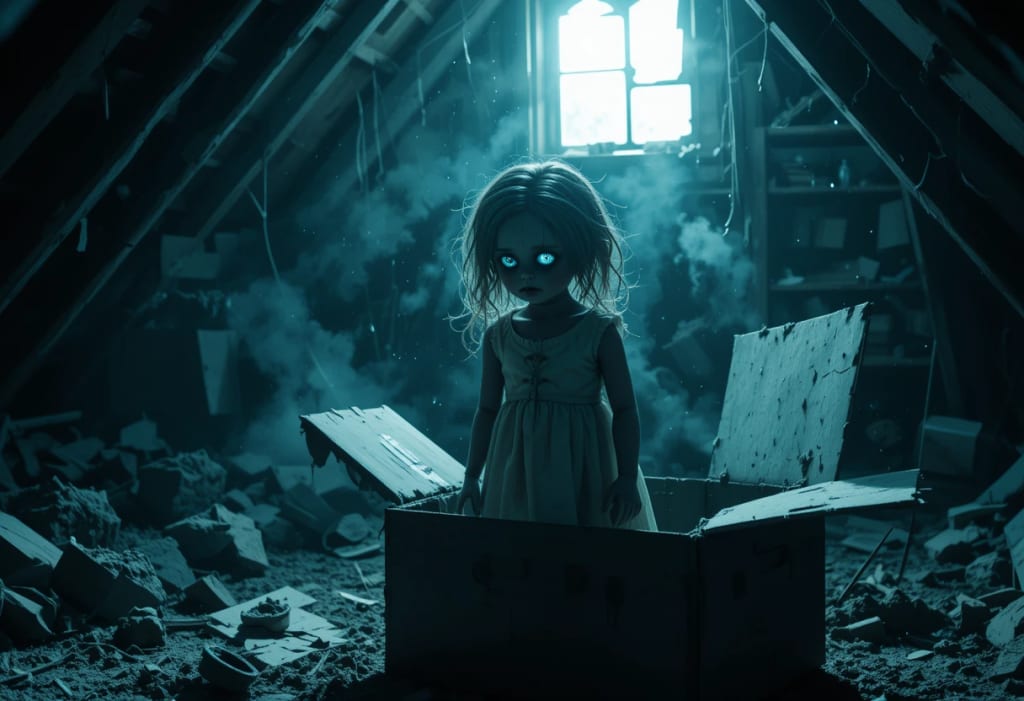 I tried to back away, but the attic seemed longer than before. My feet slipped on the wooden floor. She kept coming, her glass eyes glinting in the moonlight.