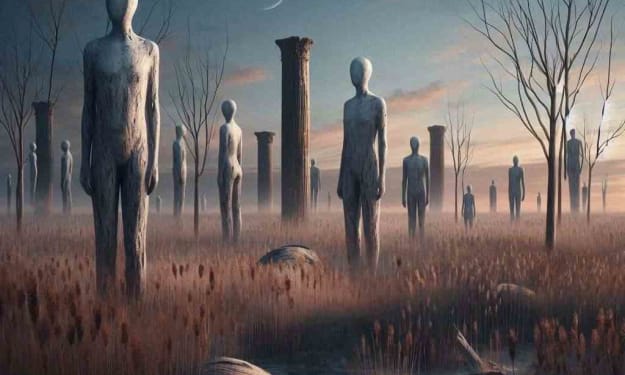As they stumbled forward, the doorway behind them disappeared, leaving only the alien landscape. The realization hit Anna like a punch to the gut: they were trapped.