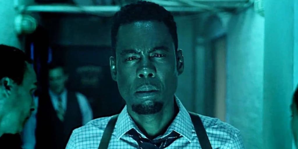 Chris Rock had apparently been wanting to break into horror for a while, and I was impressed by his first foray into the genre. With Jordan Peele, Danny McBride, and now Chris Rock, I’ve really enjoyed seeing so many comedy veterans take a stab at horror (pun intended). Rock playing the lead in a Saw film was a little jarring in theory, but when he first appears on screen cracking jokes about Forrest Gump with his friends, he seems right at home. There are still a couple of times in the movie where it feels like he doesn't fit the role, but it's never because he isn't playing the part commendably. Hopefully he'll start doing more dramatic roles, and it'll retroactively feel more normal. Samuel L. Jackson (the L stand for "muthaf*cka") is as outstanding as ever. Just think about it: Samuel L. Jackson in a Saw movie! How could you hear that and not get excited? And it’s exactly what you would hope to get from that notion. I'm really surprised that it's taken this long for Sam Jackson and Chris Rock to play father and son in a movie, because it's such a no-brainer, from a casting perspective, and their chemistry is as natural as could be. Besides those two, the only other real lead is Max Minghella, who plays the rookie detective assigned to be Zeke’s partner. He’s a little boring sometimes, but he serves his purpose, and Minghella does a fine job.