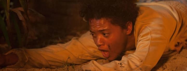 Unfortunately, this film doesn’t have much to offer. Actually, as much as Jenn (Kiersey Clemons) was wearing when she woke up there in the saltwater, feeling beach sand scraping between her toes. Nothing much. Only short jeans and a t-shirt. Fortunately, her knowledge of survival techniques was abundantly present. Without hesitation, this young lady runs through the checklist of the “Tasks to be performed when you wash up on an uninhabited island” list and starts installing herself on the island as well and as badly as possible. The first part is, therefore, a concatenation of moments where you can see Jenn handling these tasks. Estimating the perimeter of the island, developing hunting techniques, ensure a decent place to spend the night and thoroughly explore the island itself. Only the nocturnal threat was not on the list. Something for which she has to use her own personal inventiveness.
