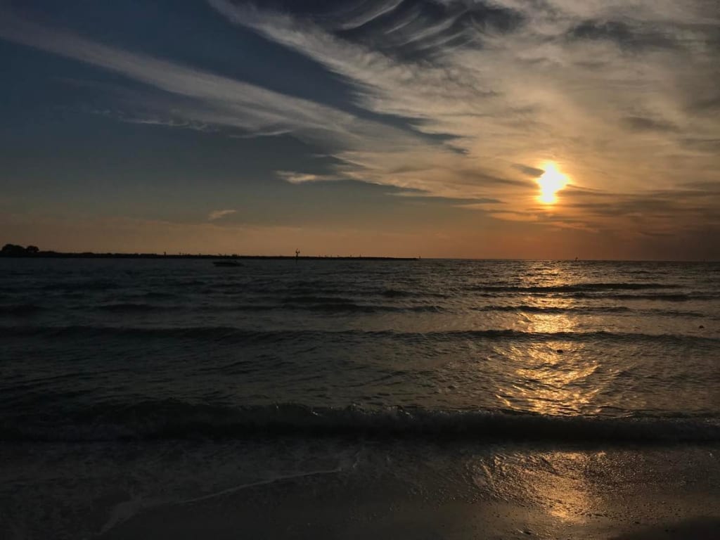 Nighttime had settled in. The ocean, which during the day looked like a rolling blue masterpiece, now looked like an empty black void. Jon sat in front of their ocean view window, staring off into the blackness. The water was almost perfectly still. Not even a ripple. But then something broke the surface. At first it looks small, but as it swims closer to the shore it grows larger and larger. Jon leans forward. He realizes the shape emerging from the water is that of a man. A man covered in blood.