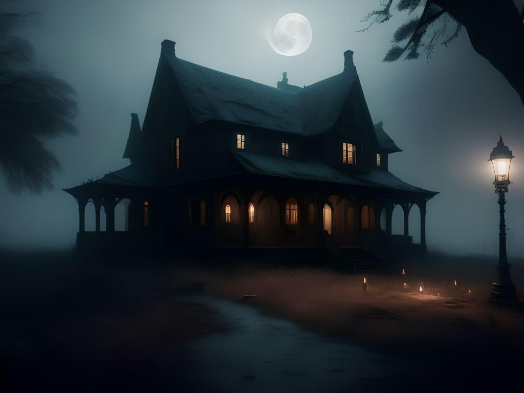 In the Shadows of Midnight: A Mysterious Haunting at an Abandoned Manor When darkness cloaks the moonlit night, An abandoned manor comes to life, Whispers echo through the halls, As restless spirits heed their haunting call.