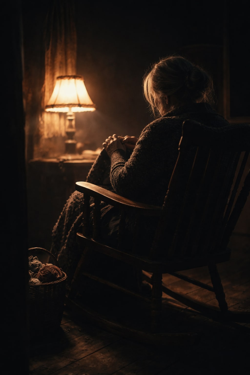 Only an old woman, sitting alone in a chair, knitting sweaters for people who never existed.