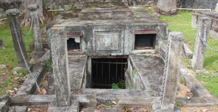 The eerie Chase Crypt in Barbados is located in the Christ Church Cemetery. It belongs to Colonel Thomas Chase and his two daughters. This half-buried tomb was purchased by the Chase family in 1724.