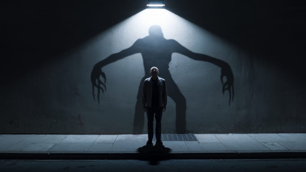 Her thoughts were racing. "This is not possible," she exclaimed. The shadow moved differently from hers; it moved as if it were alive and had free will. It moved, changing shape and extending like an arm to embrace her. With a weak breath and a building panic in her chest, she retreated.