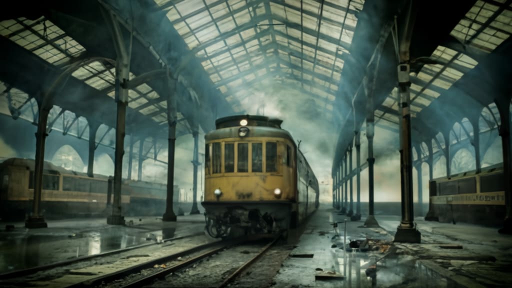 The train's headlights were faint when it emerged from the mist, leaving the platform covered in eerie, lengthy shadows. Sarah saw something odd about it, and her eyes widened.