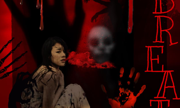 At first the mirror seemed painted in black. But as I continued to stare, the faint image of a face began to take shape. It seemed to be raining inside the mirror as the face drew closer. A puddle began to form in the sink as rain water dripped from the mirror. As I looked at the growing puddle, it began to turn red. What appeared to be blood poured from the mirror now unforgivingly, spilling across the sink and floor as it covered me with its evil stench. I looked back at the mirror as the face broke through the glass, its mouth gaped open, its blood red lips harsh against its pale skin. It had no eyes, but the dark black empty sockets seemed to stare at me as it inched towards my face. Her hair was wet, and matted with blood. I could feel her breath on my face as blood dripped from her gaping mouth. Hundreds of teeth it seemed filled her mouth like blood stained daggers. Just as the deafening sound of thunder filled the room, her mouth shoot open. I could see the tormented faces of lost souls in the depths of her mouth, their hands raised in desperation before falling back into the abyss of darkness. Just as I raised my eyes, her mouth opened even wider, a growl escaping her lips as she devoured my face.