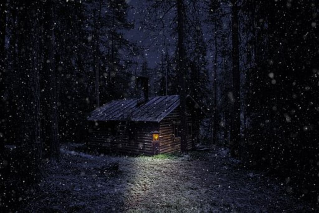 "The cabin in the woods had been abandoned for years, but one night , a candle burned in the window." It was a cold winters night when I looked out my cabin window. I was surprised to see a light, at first I did not know where the light was coming from.