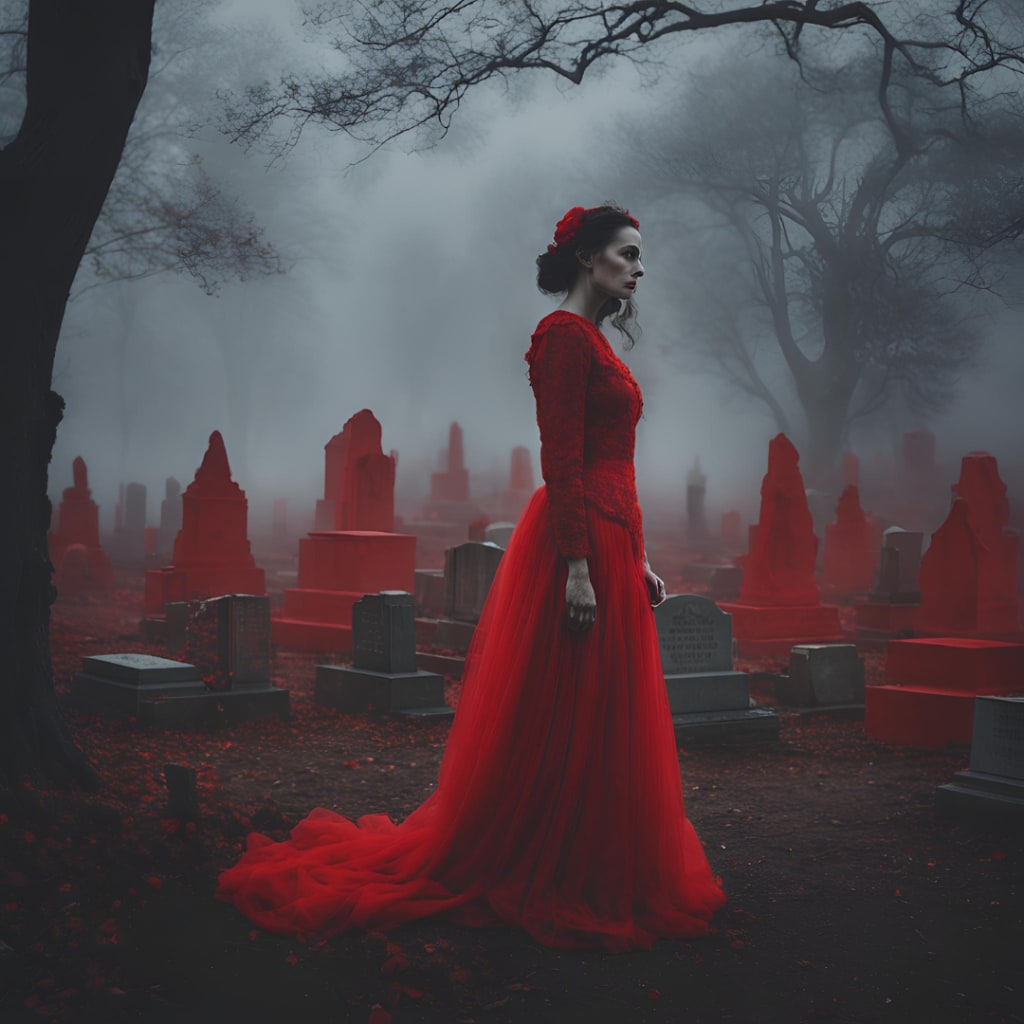 “If I were you, I would get out, I WOULD GET OUT. She’s going to kill you just like she killed my friend, FRIEND.” His voice cracked at the thought of his friend, the memories they had from childhood came and snatched the flowers from his hand, but gravity took over and the loose mud splashed on HER dress, Red. His eyes widened as if he was just realising why he was there.