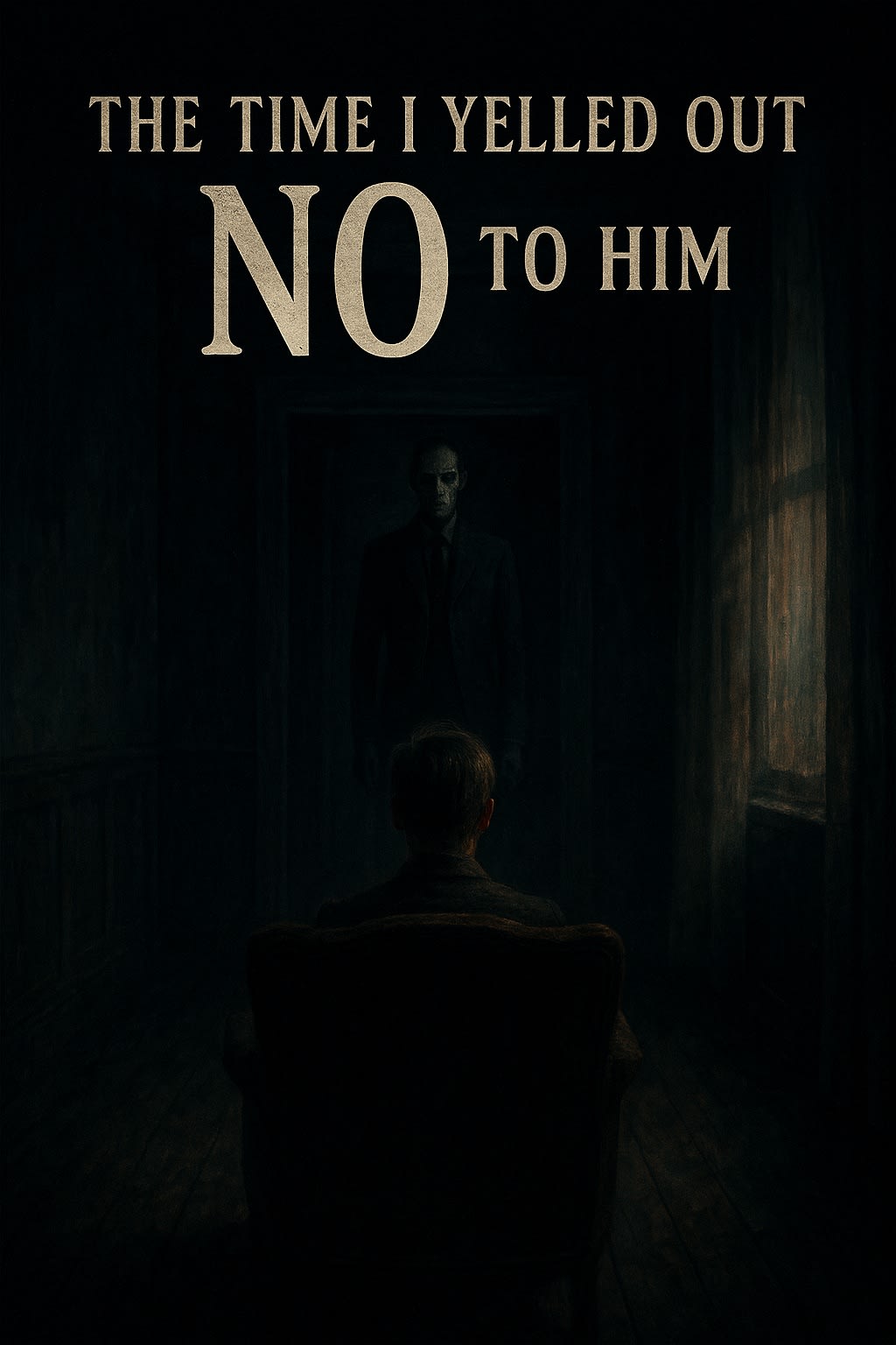 The floorboards groaned. My stomach lurched. Slowly, I turned my head toward the dark hallway. The air bent, shadows stretching unnaturally, as though the darkness itself was being peeled open. And then he stepped out.
