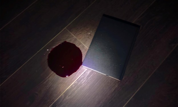 It was still light out when he got to Perry Street. This wasn’t the best neighbourhood, so stan felt nervous as he walked up the street. The street was eerily empty, but he was thankful that no one seemed to be out at this time. His eye was drawn to a large oil stain in the middle of the street. When the sun hit it, the oil almost looked red, so maybe it was transmission fluid.