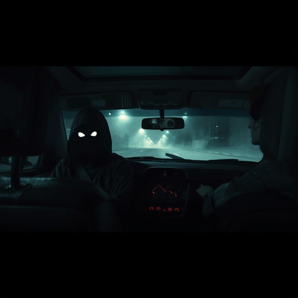 He was tall and thin, wearing a black coat that seemed too heavy for the mild night. His face was pale, almost gray in the glow of the dashboard lights. Without a word, he opened the rear door and slid inside.
