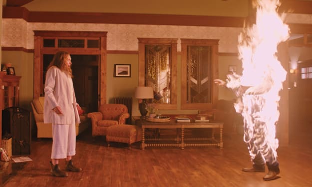 But, instead of being inspired, Ellison uncovers a package of weird home films on the shelves which look like indiscriminate horrors - those that may endanger his whole family.