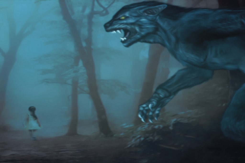 It was a dark and stormy night, and the woods were alive with the sound of raindrops tapping against the leaves. The wind howled through the trees, and the branches creaked and groaned under its force. But beneath the cacophony of the storm, there was another sound, a low growl that seemed to come from deep within the forest.