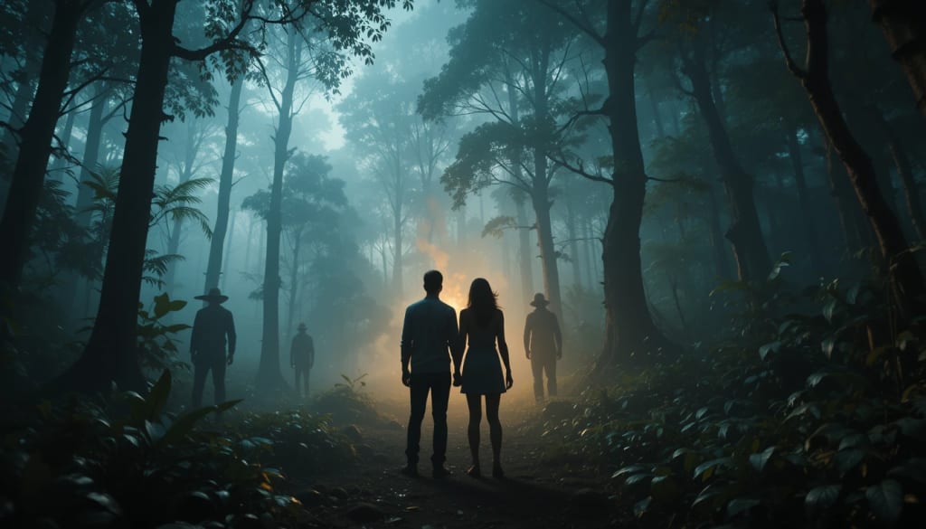 A faint sound—like footsteps crunching on leaves—came from the dense trees nearby. But when they flashed their torchlight, nothing was there.