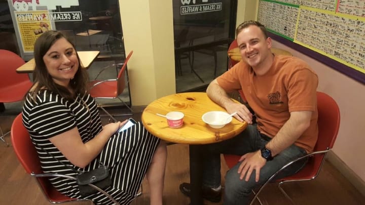 My husband and I ended up dating just shy of two years before we got married. When people ask how we met, I tell them eHarmony. But in the back of my mind, I’m always thinking that we really met over ice cream.
