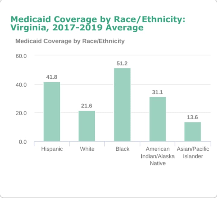 Medicaid (here in Virginia) isn’t the best paying when it comes to claims, but at least they pay something. Unfortunately, there were times in which some private practices didn’t even accept Medicaid due to the lower rate of paid claims. The problem is, as pictured below, between 2017–2019, African Americans held the highest average of being Medicaid recipients. Offices not accepting Medicaid, ultimately means the black Americans aren’t able to receive care. Maybe, they could be seen elsewhere, but socioeconomic & environmental factors often prevent that.