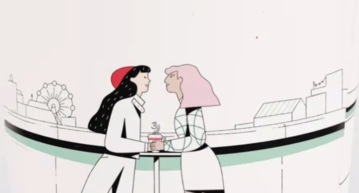 One illustration introduces a meek lesbian couple in a backdrop of a city skyline. With the opportunity to build your own fantasy scenario with these staple characters as the centerpiece, we can all agree the company got the cue. Starbucks' Vice President (at the time) Jeffrey Fields noted before its launch that customers want to be able to create their own stories, stating, "In the past we have told stories with our holiday cup designs [...] This year, we wanted to usher in the holidays with a purity of design that welcomes all of our stories."