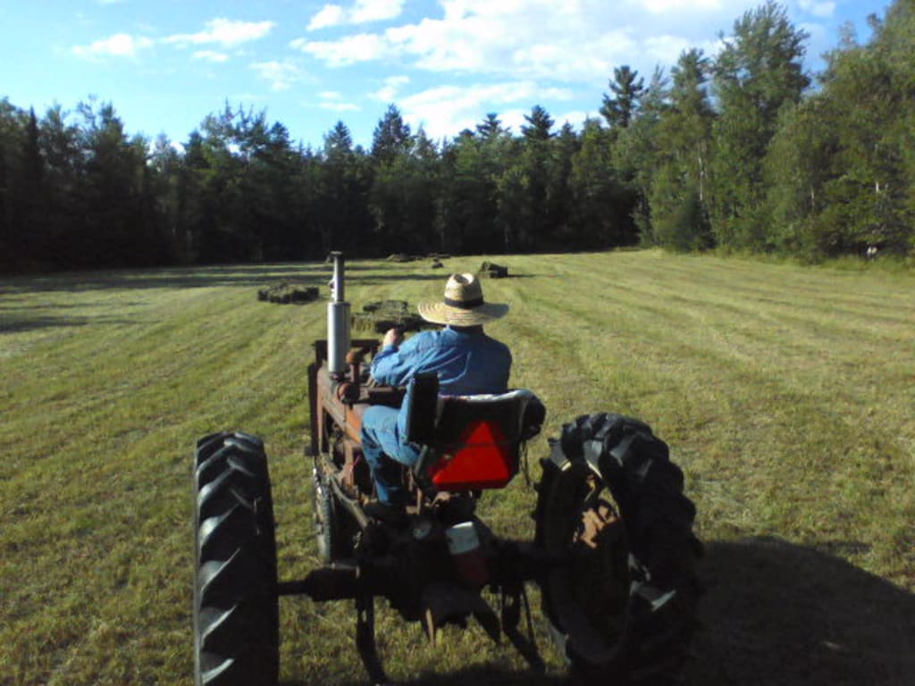 In 1965, my dad and mom bought the farm. Not in the euphemistic sense of dying, mind you, but in the literal meaning of purchasing a modest farm and large house halfway between Dad's work and the church they had joined when they moved to Maine. I was yet several years from existence at the time, but when I arrived I had the distinct pleasure of spending eighteen years on the farm. Not all of it was fun and games, though. No sir (or ma'am). There was wood to cut and stack for the winter, and there was hay to mow, rake, bale, and haul up to sell. We didn't have animals of our own besides the occasional flock of chickens (and the one year we ended up with roosters by mistake--weren't they a mean bunch!), but Dad owned enough acreage to put in 2,500 bales or more every summer and sold the crop to whoever wanted it. He got good prices for his quality feed, and the profit he made paid our tuition to a Christian school.