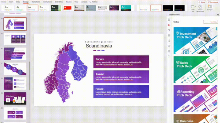 ExpertSlides offers a vast library of professionally designed templates and themes, catering to various industries and presentation styles. With a single click, users can choose a visually appealing template that suits their needs and modify it to reflect their branding or personal touch. The extensive collection of high-quality images, icons, and fonts further enhances the visual impact of presentations, ensuring they leave a lasting impression on the audience.