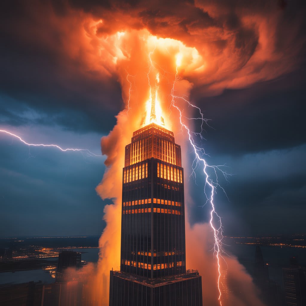 Fire in the Sky: Lightning Turns Tower Into a Fiery Inferno