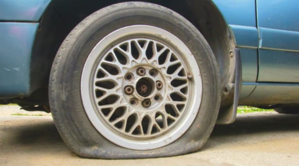 Suddenly, she heard a pop, and she felt the old car veer heavily to the right.
