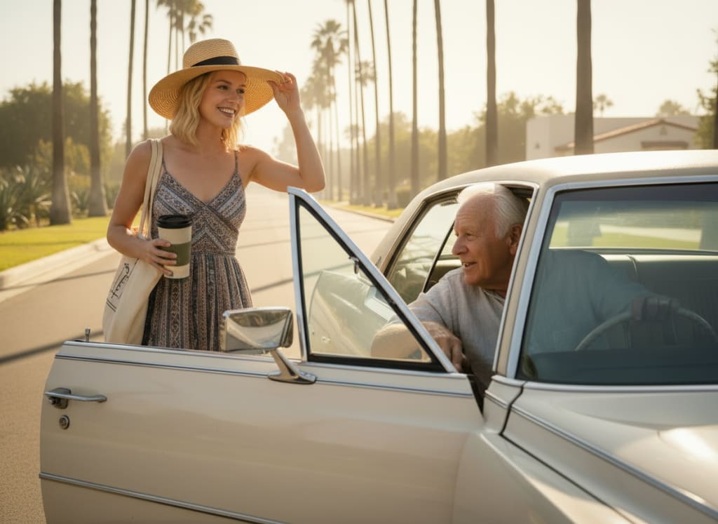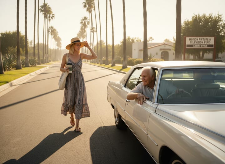 She had parked farther than she meant to the kind of distance that stretches a simple errand into a small pilgrimage. The sun was bright, the pavement humming, and the walk toward the Motion Picture Home office felt longer than usual.