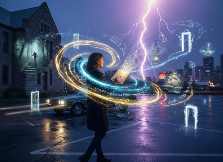 And as she walked back toward her car, she felt that familiar flicker the lightning storm spark that always came before a story. The sense that she had just stepped through one of those dream doors writers carry inside them, where memory, imagination, and possibility overlap.