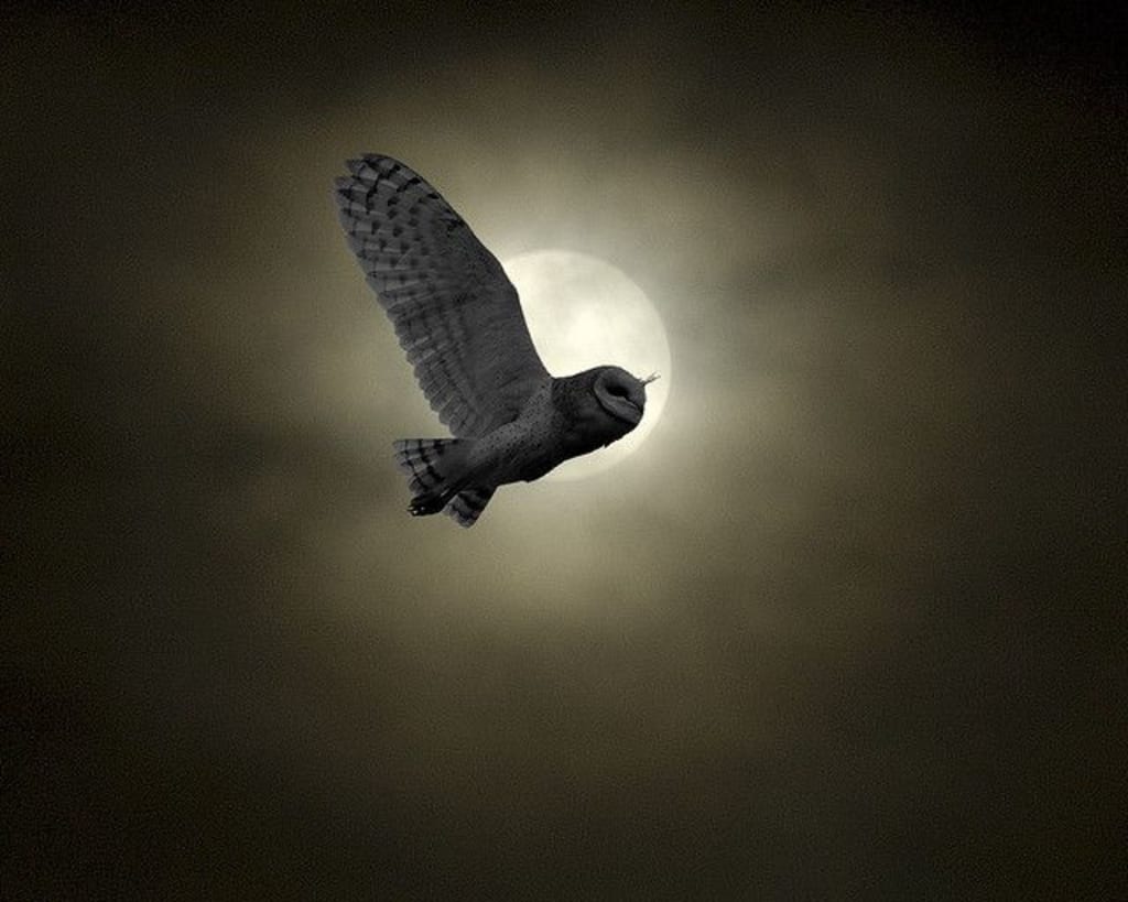 And so, the barn owl would travel by night, carrying the words of the Sun to his Moon, and every morning it would come and describe her smile, even on nights when she hid herself from the sky.